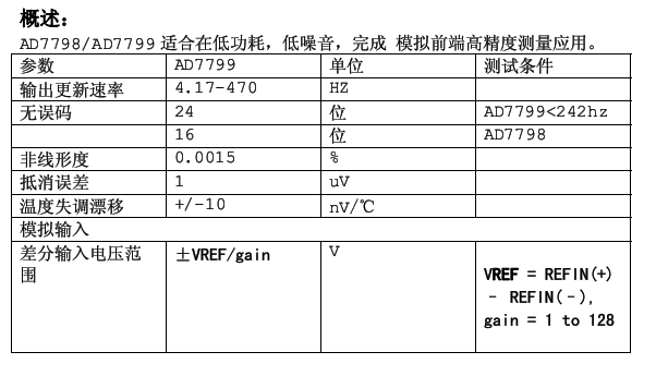 芯片解密AD7798/AD7799均为适合高精度测量应用的低功耗、低噪声、完整模拟前端,内置一个低噪声16位/24位Σ-Δ型ADC,其中含有3个差分模拟输入,还集成了片内低噪声仪表放大器,因而可直接输入小信号。当增益设置为64、更新速率为4.17 Hz时,AD7799的均方根(RMS)噪声为27 nV,AD7798的均方根(RMS)噪声为40 nV。AD7798/AD7799片内特性包括一个低端电源开关、基准电压检测、可编程数字输出引脚、熔断电流控制和一个内部时钟振荡器。输出数据速率可通过软件编程设置,可在4.17 Hz至470 Hz的范围内变化。AD7798/AD7799采用2.7 V至5.25 V电源供电,AD7798的典型功耗为300 µA,而AD7799的典型功耗为380 µA,两款器件均采用16引脚TSSOP封装。