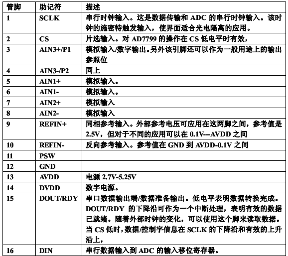 芯片解密AD7798,AD7799引脚图,采用16引脚TSSOP封装。采用2.7V至5.25V电源供电,AD7799的典型功耗为380μA。
