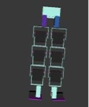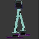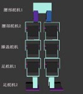 ⑤跨出左脚:在上一图的基础上调节左脚的腰部舵机2足舵机1使机器人左脚跨出。