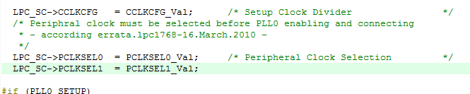1、IC解密从下图可以看出外设时钟都是与内核系统时钟相连接的,所以不可以像很多单片机,pll选择内部振荡器,外设可以用外部晶振当时钟源![]() 2、IC解密在使能和链接PLL之前外设时钟必须要选择好,从sysinit()中可以看到下面一段话,初始值都为0,所以定时器的时钟源都是系统时钟cclk的四分之一,这个证明了从系统初始化的时候,所有外设的时钟源都已经规定好啦 ![]() 3、每次对PLL操作PLL0CFG和PLL0CON后都要输入反馈序列0xAA,0x55,才能生效,不管是PLL0和PLL1 4、例子程序默认外部晶振是12M,内核时钟是100M,IC解密默认是使用外部晶振 ,如果要修改外部晶振,但依然像保持 #define CCLKCFG_Val 0x00000003 LPC_SC->CCLKCFG = CCLKCFG_Val; 很明显,例子程序给的是选择外部晶振 |