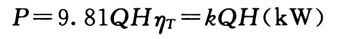 水电站的实际出力要小于理论出力。在由水能转化为电能过程中,会产生能量损失,主要有水头损失与能量转化损失: 水流经输水道后会损失一部分能量,称为水头损失Ah,它与流道长度、截面形状和尺寸、构造材料、铺设方式等等因素有关,须在电站总体布置完成后才可做出较精确的计算。初步计算时,可估计Ah=(1%~10%)Ho,输水道长、流速大的取大值,输水道短、流速小的取小值。 除此外在能量转化过程中还将损失一些能量,水轮机的效率约90%至95%、发电机的效率约90%至98%、传动设备也会有能量损失,水电站实际出力P为 |